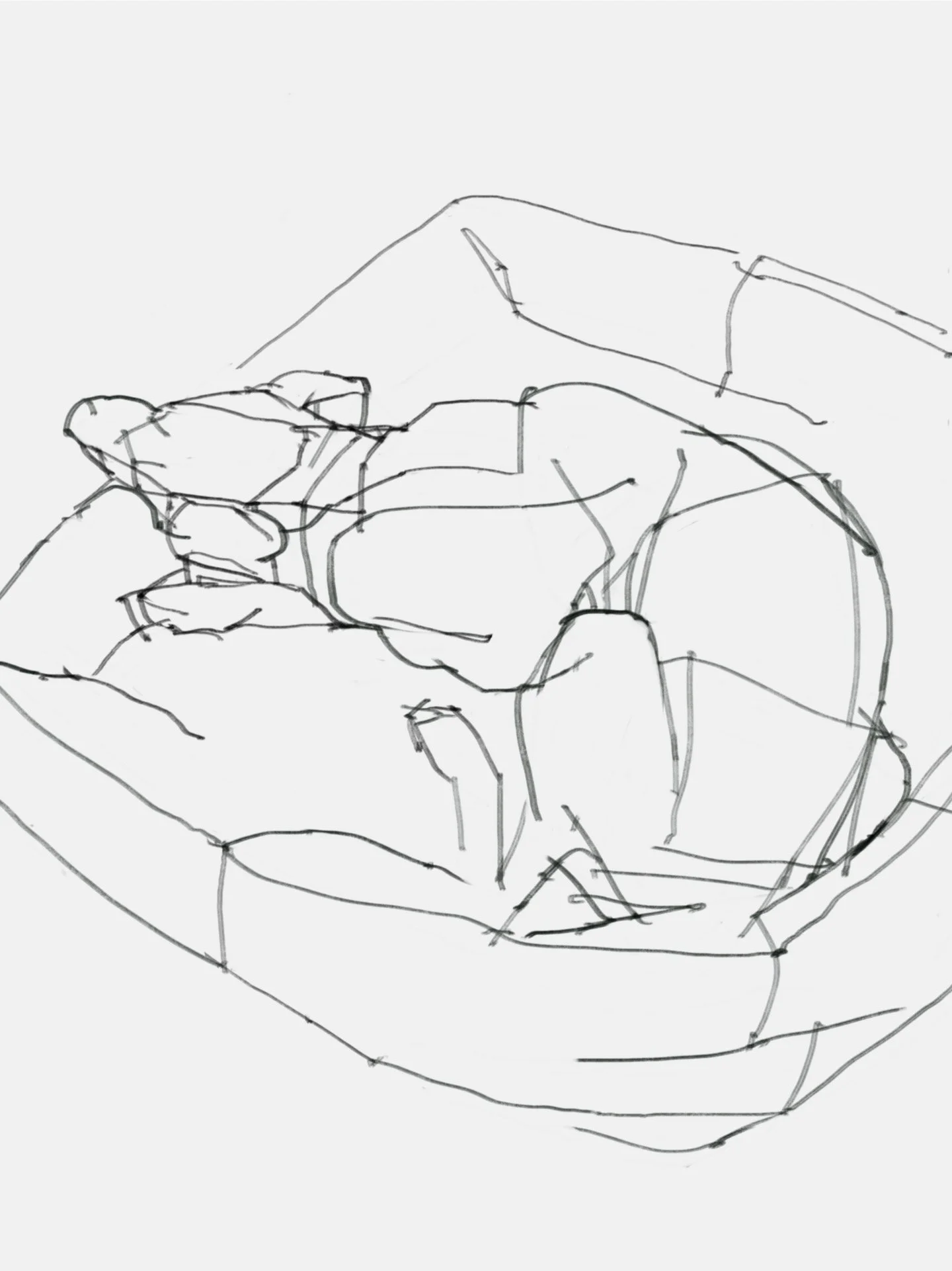 During 2023, I drew my dog Bella hundreds of times and then turned 30 of them into polymer-plate prints. She never sat still for long, so I was always looking for the fastest way to make a likeness. The series is in editions of 4, made in collaboration with Cone Editions Press.